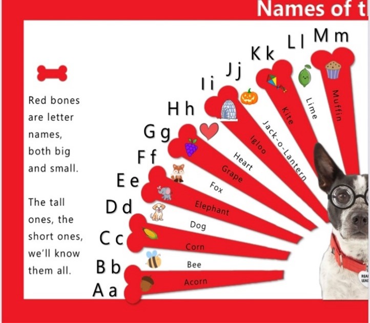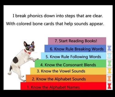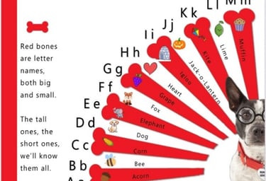 Start with color-coded bone fans that break phonics' names and sounds into 6 levels of colored "bones."